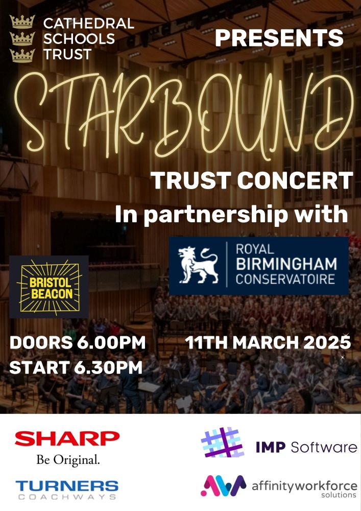 We are delighted to let you know that CST’s annual concert ‘Starbound’ will take place this year on Tuesday 11th March 2025 starting at 6.30pm at Bristol Beacon.